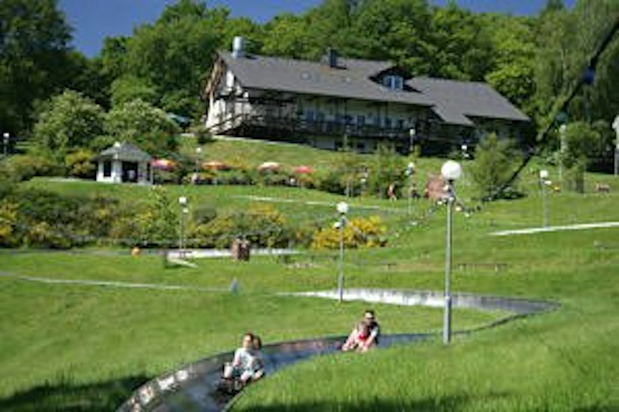 Hier geht es in rasanter Fahrt 700 Meter den Berg hinunter. Die Geschwindigkeit entscheidet jeder selbst, die Schlitten lassen sich selbst Bremsen. Außerdem gibt es ein Erlebnisgelände mit großem Trampolin, Minigolf und Kinder-Elektroautos.