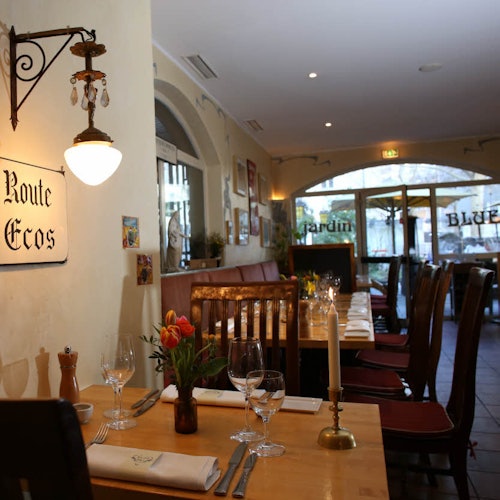 Vom Fass fließt Gaffel Kölsch (0,2l für 1,70 Euro) und belgisches Leffe Brune (0,25 für 2,90 Euro). Neben den Flaschenweinen (ab 18 Euro) gibt es immer einen Hauswein für circa 5,50 Euro (0,2l).