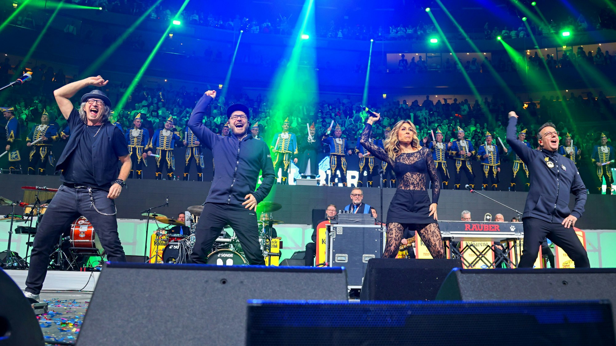 Als die Räuber das Kultlied „Wenn et Trömmelche jeht“ spielten, setzte sich im Oberrang eine XXL-Polonäse in Gang. Friedlich und ausgelassen drehten die Gäste ihre Runden und sorgten so für ein herrliches Bild. Am Sonntag springt die Sängerin bei den fünf anstehenden Auftritten erneut für Sven West ein. Montag haben die Räuber frei, Dienstag sind wieder drei Termine im Kalender. Bis dahin hat sich die Stimme des Sängers hoffentlich wieder gefangen. (red)