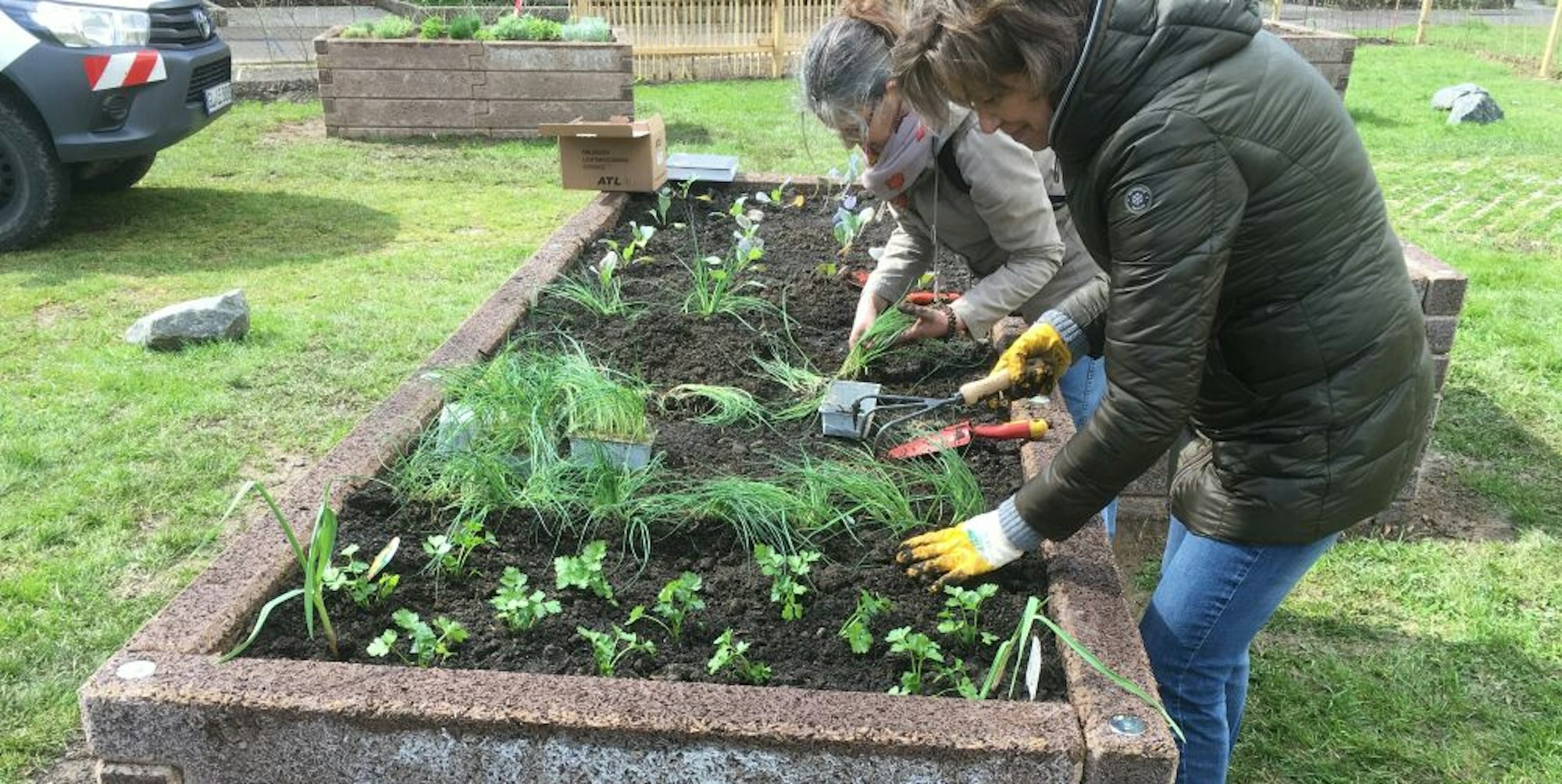 Hobbygärtner haben die Hochbeete bepflanzt und die Patenschaft für den Blütenstadt-Garten.
