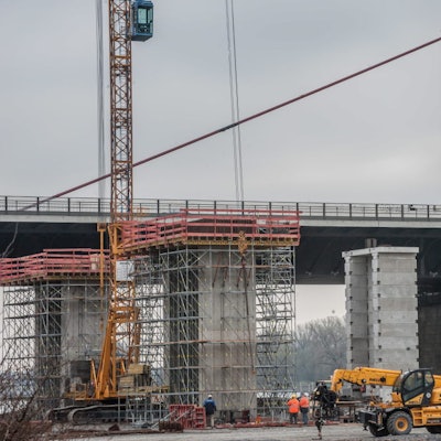 Fortschritt bei Leverkusener RheinbrückeErste Tragpfeiler am östlichen Ufer errichtet