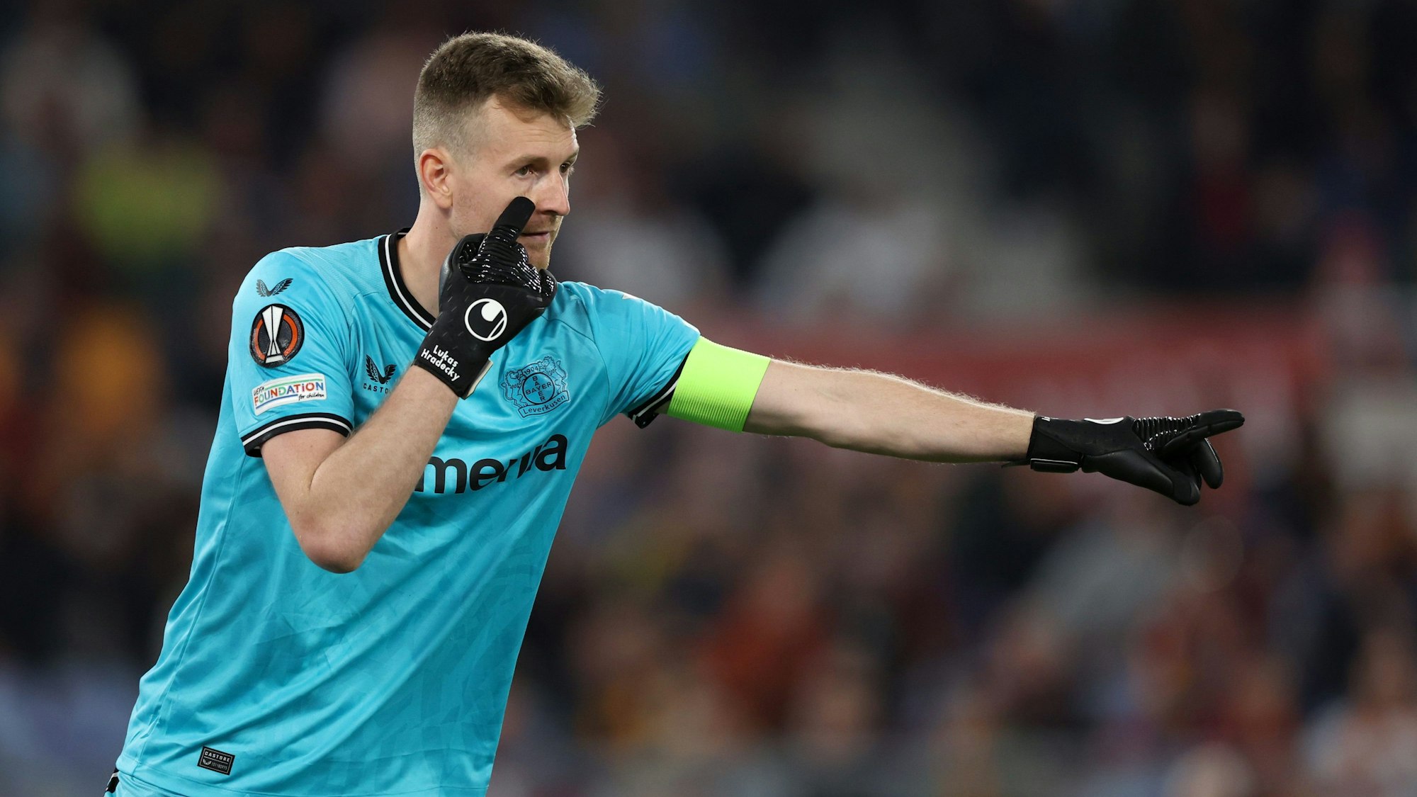 Lukas Hradecky wünscht Frankfurt den Sieg, obwohl Bayer 04 dann mehr als zehn Millionen Euro verlieren würde.