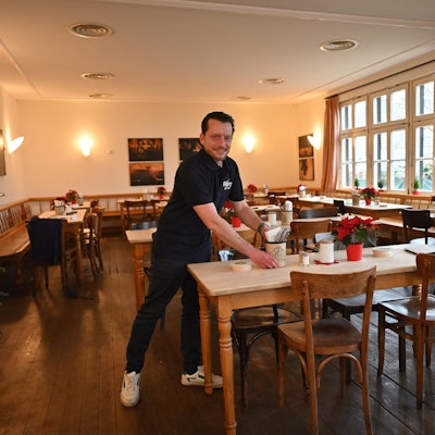 Neben dem Fachwerkhaus des „Herzogenhof“ in Odenthal liegt, zum Teil mit Überdachungsmöglichkeiten, der Biergarten des Wirtshauses. Die Wilbrand-Brüder haben als neue Pächter das Restaurant neu gestaltet wiedereröffnet.