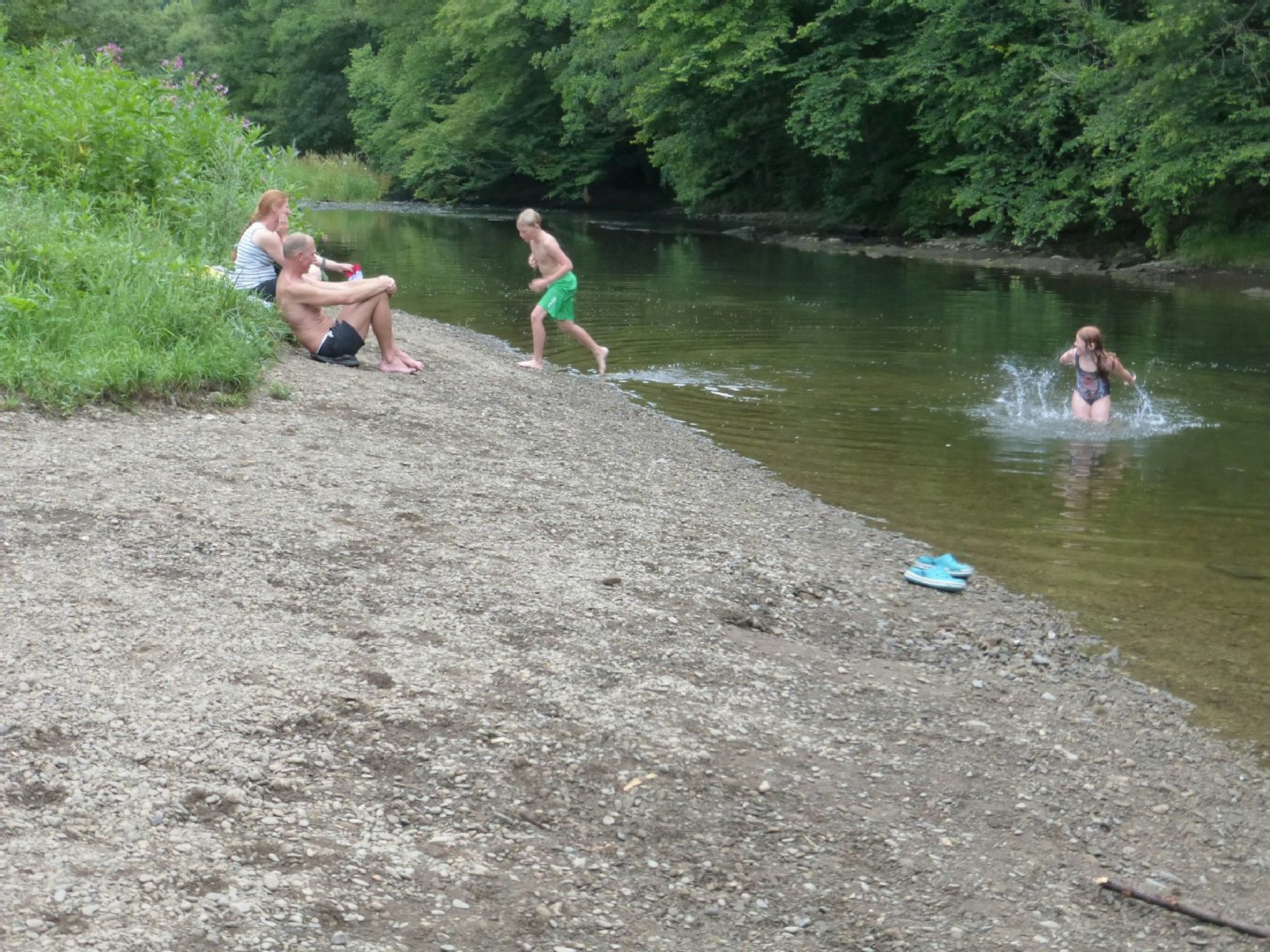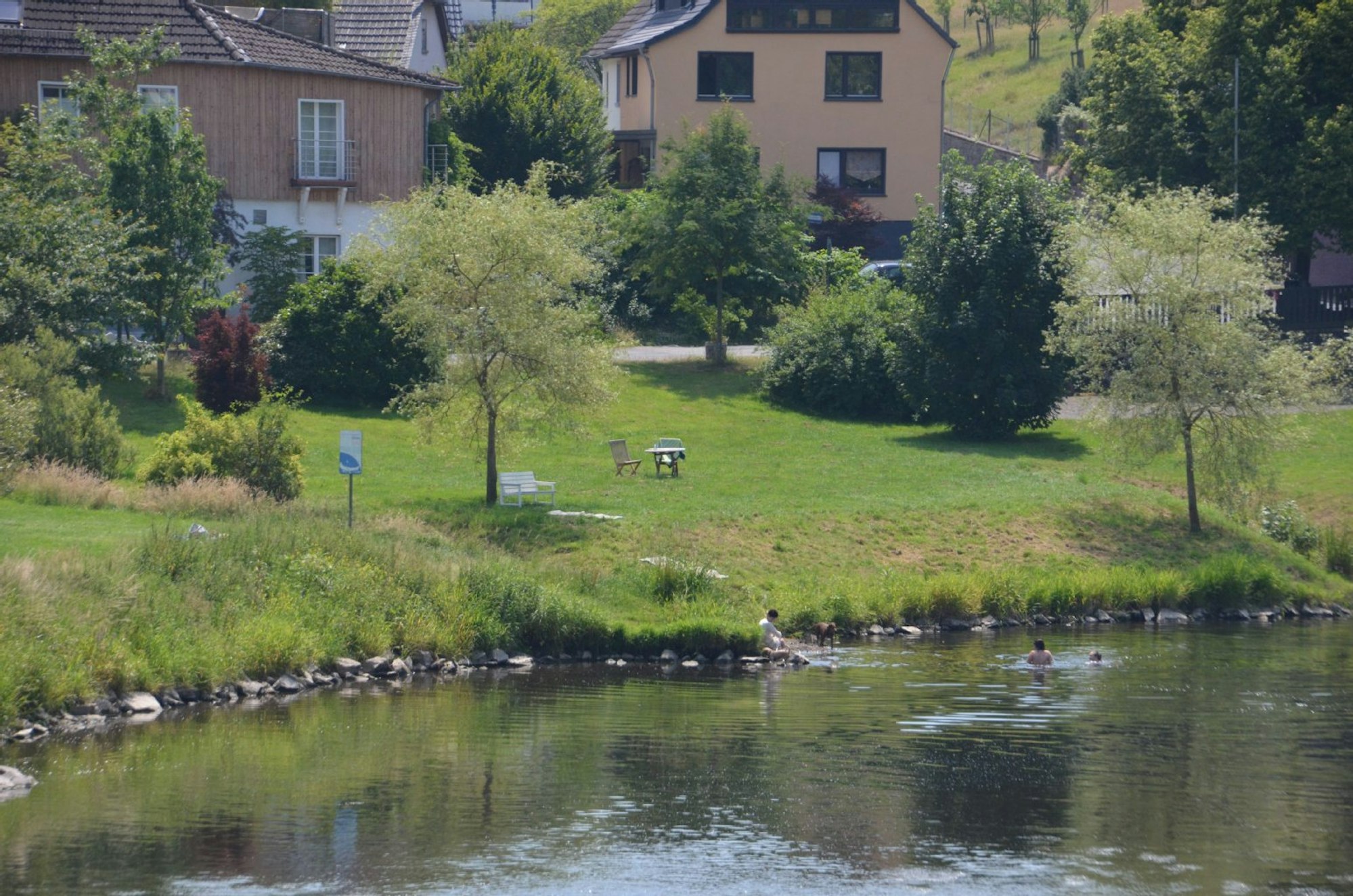 Das Ufer ist nicht überall leicht zugänglich. Allerdings reichen meist Grasflächen bis ans Flussufer. Es gibt weitere Freizeitangebote gleich in der Nähe.