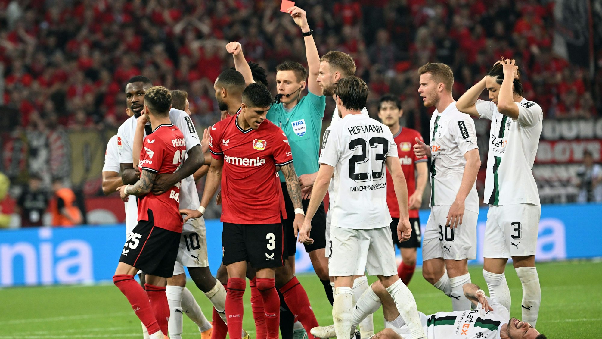 Am Dienstag bekam Bayer 04 Leverkusen die offizielle Bestätigung für das, was alle schon seit Montag alle wussten: Piero Hincapie wurde für sein rüdes Foul am Mönchengladbacher Julian Weigl beim 2:2 am Sonntag vom DFB mit einer Sperre von drei Spielen belegt. Der sportlich zuletzt herausragend zuverlässige Innenverteidiger wird dem Werksklub beim Saisonabschluss in Bochum fehlen.
