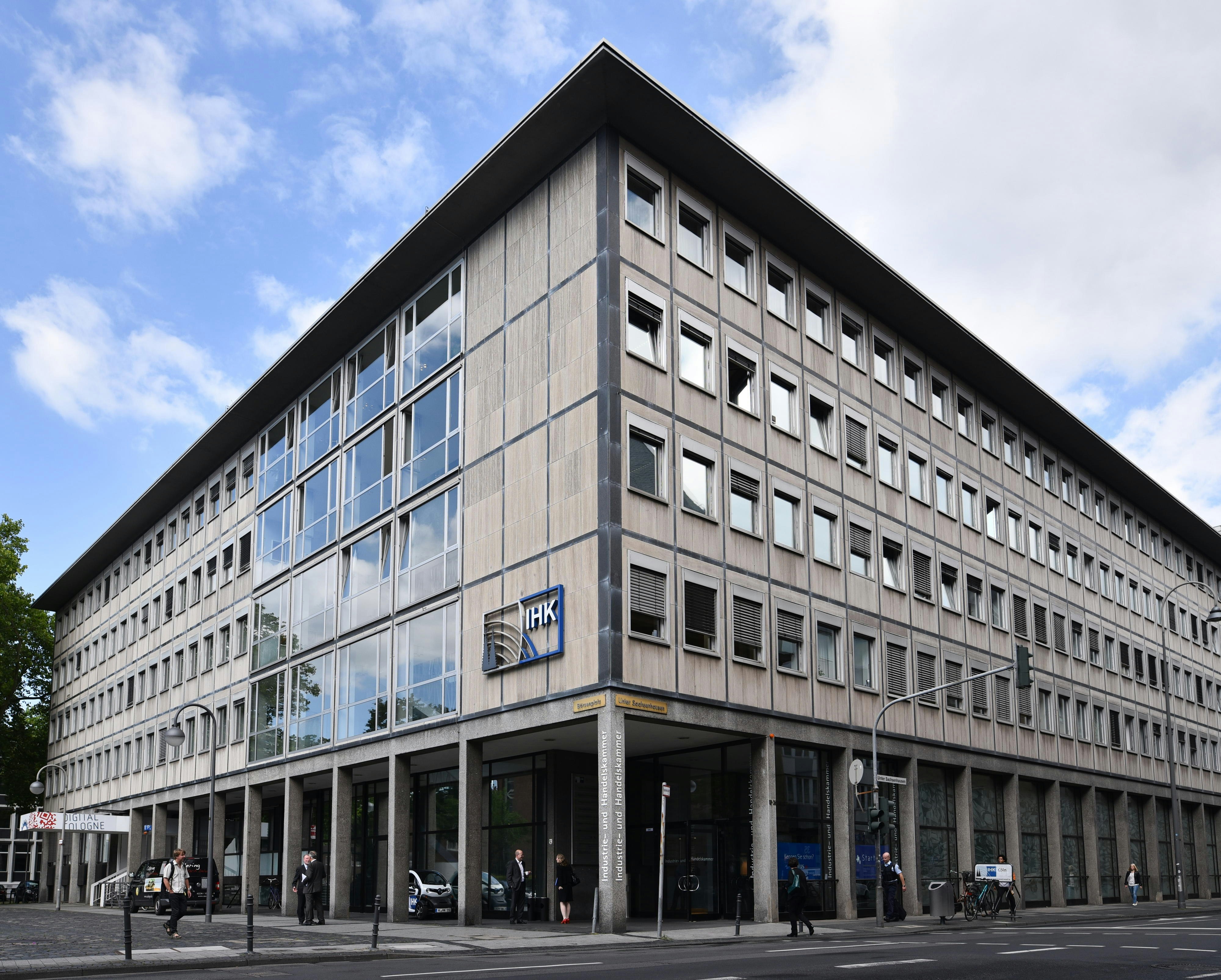 Die Industrie- und Handelskammer zu Köln, kurz IHK Köln, beschäftigt sich mit Wirtschaft und Politik, der Beratung von Unternehmen und Privatpersonen sowie der Aus- und Weiterbildung von Arbeitskräften in verschiedenen Berufen. Die IHK ist eine Körperschaft des öffentlichen Rechts. In Köln vertritt die IHK die Interessen der Gewerbetreibenden und Unternehmen in der Stadt Köln, im Oberbergischen Kreis, im Rhein-Erft-Kreis und im Rheinisch-Bergischen Kreis. Insgesamt werden die Interessen von rund 150.000 Unternehmen vertreten. Neben dem Hauptsitz in der Stadt Köln unterhält die IHK Geschäftsstellen in Bergheim, Gummersbach und Leverkusen. (Foto: IHK Köln)