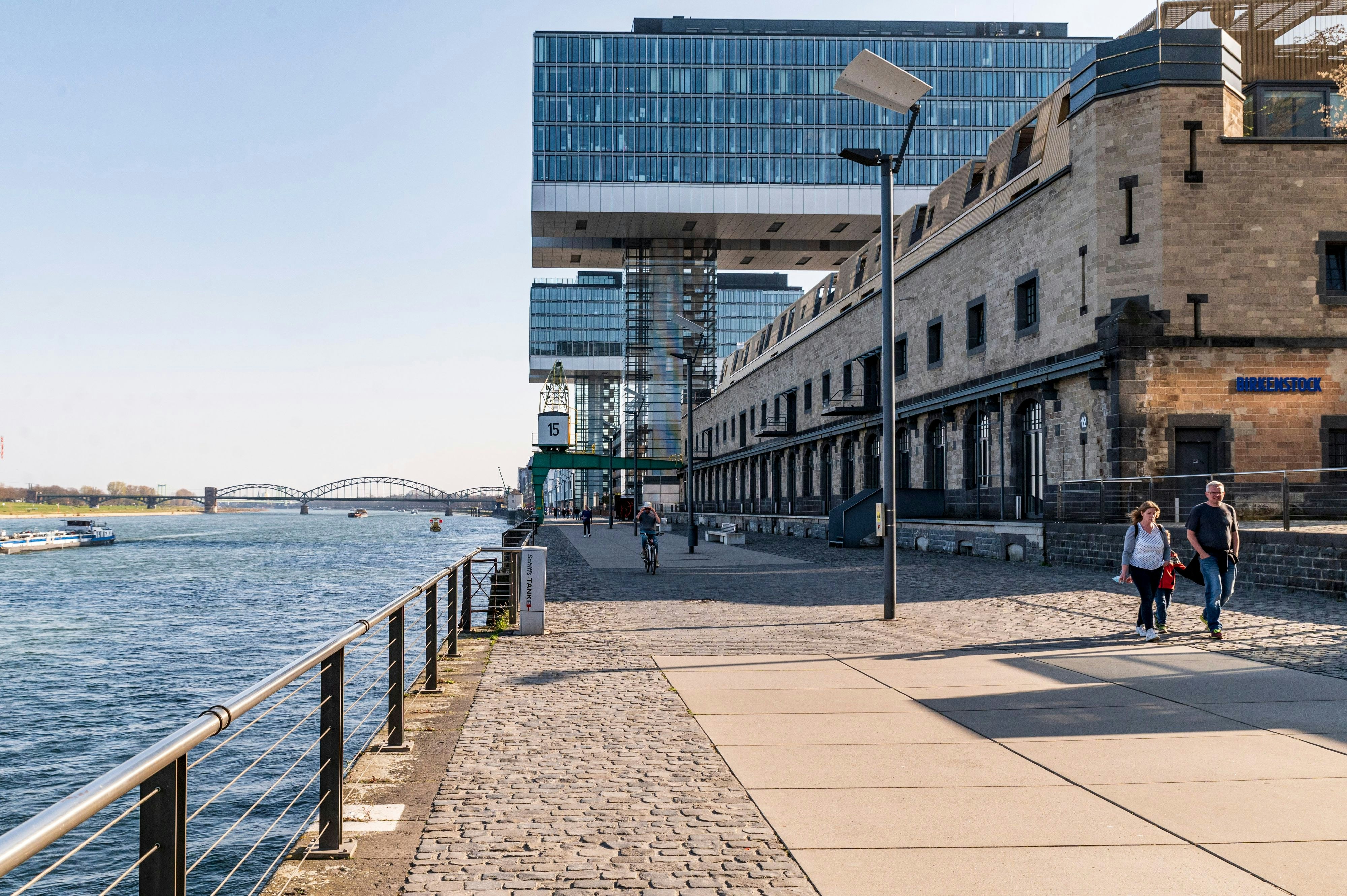 Der Rheinauhafen ist ein beliebter Standort im Herzen Kölns, direkt am Rheinufer im Kölner Stadtteil Altstadt-Süd. In den letzten Jahrzehnten hat sich der Rheinauhafen zu einem modernen und lebendigen Standort entwickelt. Alte Speicher und Hafenanlagen wurden saniert und zu modernen Wohn- und Geschäftshäusern umgebaut. Eines der markantesten architektonischen Merkmale des Rheinauhafens sind die sogenannten Kranhäuser. Die drei Gebäude, die wie umgedrehte Kräne aussehen, sind zu einem Wahrzeichen des Rheinauhafens und der Stadt Köln geworden. Sie bieten Platz für moderne Wohnungen, Büros und Geschäfte und sind ein beliebtes Fotomotiv für Touristen und Einheimische. Im Rheinauhafen finden diverse Events statt, darunter Sommer- und Straßenfeste, Radrennen, Laufevents oder der große Hafen-Weihnachtsmarkt. (Foto: Alexander Roll)